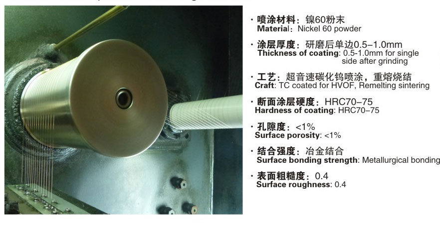 尼霍夫多頭拉絲機(jī)退火滾筒表面燒結(jié)鎳合金實(shí)例